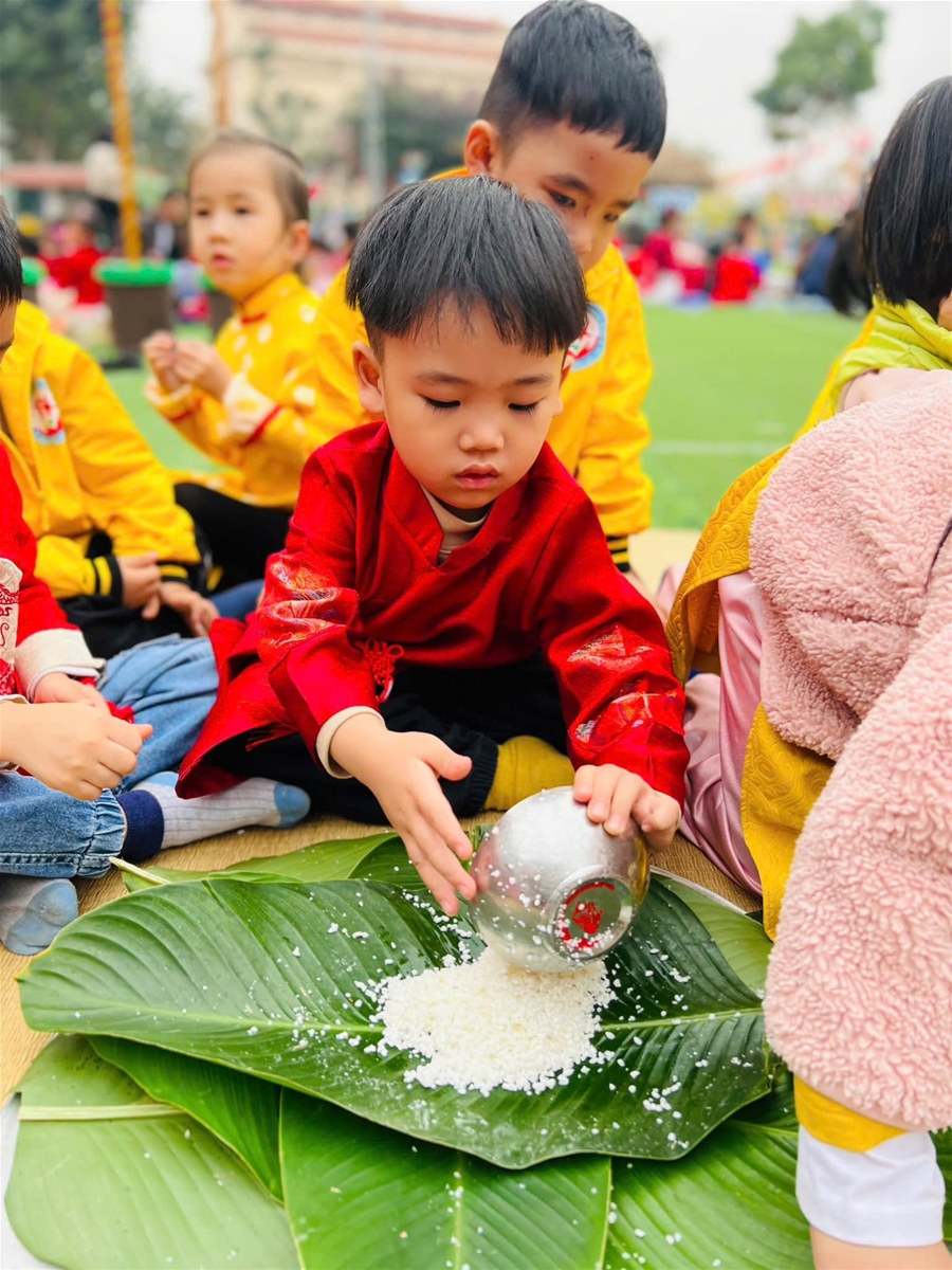 Các tiết mục múa hát vui tươi do các bé biểu diễn đã mang lại không khí rộn ràng, tươi mới cho mùa xuân. Đặc biệt, các trò chơi dân gian như kéo co, nhảy bao bố, bịt mắt bắt dê… không chỉ giúp các bé vui chơi, rèn luyện thể chất mà còn tăng thêm tình đoàn kết giữa bạn bè. Kết thúc hoạt động, các bé được tham gia bữa cơm gia đình – nơi các bé cùng các cô giáo và phụ huynh ngồi quây quần, chia sẻ niềm vui sum họp.
